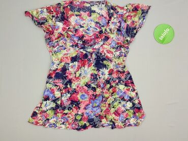 Bluzka damska w kwiaty - Krój: lekko rozkloszowana tunika z krótkim rękawem, okrągły dekolt - Zapięcie: suwak z tyłu na całej długości pleców - Materiał: gładka, średniej grubości tkanina o satyno...