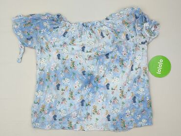 Bluzka damska z krótkim rękawem – rozmiar XL - Kolorystyka: biały w niebieski, roślinny/kwiecisty wzór na całej powierzchni - Krój: lekko luźny, z zaokrąglonym dekoltem i delikatnie opuszczonymi r...