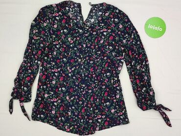 Bluzka damska w odcieniach granatu, ozdobiona wzorem w kwiaty. Charakteryzuje się luźnym krojem i długimi rękawami, zakończonymi mankietami. Idealna do noszenia na co dzień, na przykład do pracy lu...Stan: