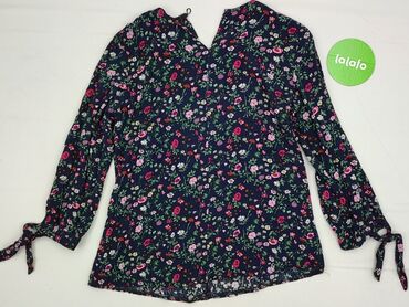 Damska bluzka z długim rękawem, rozm. M - Kolor bazowy: granat - Wzór: gęsty, kwiatowy nadruk w odcieniach żółci, różu i bieli z zielonymi listkami - Krój: klasyczny, lekko dopasowany - Dekolt: ok...