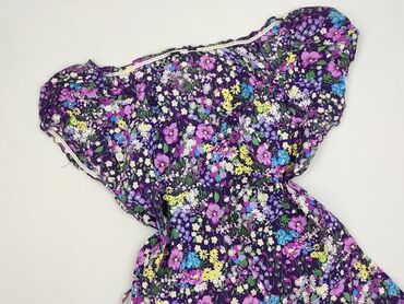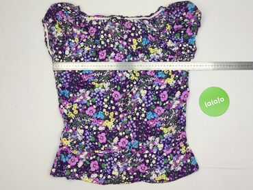 Bluzka damska hiszpanka w kwiaty - Fason: hiszpanka z odkrytymi ramionami, krótkie bufiaste rękawy - Dekolt i dół na elastycznej gumce, delikatne marszczenia - Wzór: niebieski, kwiatowy, różne odc...