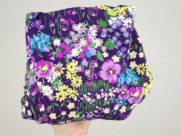 - Wzór: gęsty, kolorowy motyw kwiatowy na ciemnofioletowym tle (odcienie fioletu, żółci, bieli, zieleni, niebieskiego)