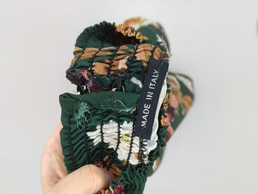 Zielona bluzka damska we wzór paisley - Materiał: 100% wiskoza (metka: Prodotto in Italia) - Kolor/wzór: biała baza z zielonym, roślinnym ornamentem/paisley - Krój: rozszerzana ku dołowi, z falban...Kolor: