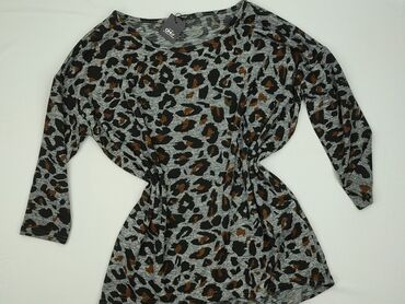 Bluzka damska Minx - Kolor: melanż szary - Nadruk z przodu: duże litery „OMG” w panterkowy wzór - Krój: luźny, z obniżoną linią rękawów, lekko wydłużony tył (asymetryczny dół) - Dekolt: szeroki, o...