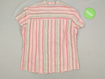 Bluzka damska marki Casual Club, ozdobiona wzorem w pionowe paski w odcieniach różu, zieleni i beżu. Posiada krótki rękaw i dekolt w kształcie litery V z zapięciem na guziki, co dodaje jej swobodnego charakteru. Materiał jest przyjemny w dotyku. Idealna do codziennych stylizacji, zapewnia komfort noszenia i pasuje do wielu zestawów.