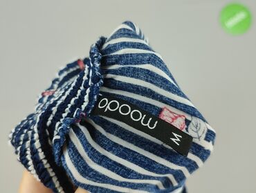 Bluzka damska Moodo, rozmiar M. - Fason: luźny, z krótkim rękawem typu kimono - Wzór: poziome pasy w kolorze bieli i delikatnej zieleni - Dekolt: okrągły - Dół: tunel ze ściągaczem i troczkami do ...