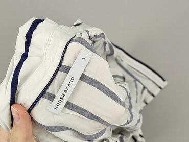 Bluzka damska HOUSE Brand, rozmiar L. - Kolor: biały w czarne, kontrastowe paski (pionowe; kieszonka na piersi w poziome paski). - Krój: luźny, z krótkim rękawem, okrągły dekolt. - Detale: naszywa...