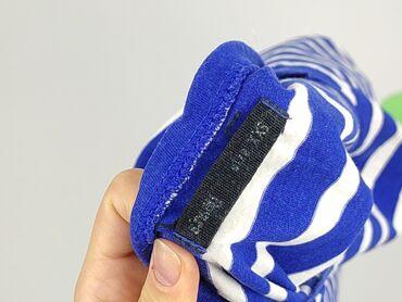 T-shirt damski w paski, rozmiar S - Fason: taliowany, z krótkim rękawem - Dekolt: szeroki, zaokrąglony - Wzór: poziome białe paski na granatowym tle (marynistyczny look) - Detal: mała kieszonka na...