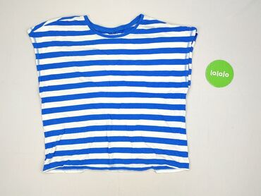 T-shirt w paski – żółto-białe, krótki rękaw - Krój: luźny top z krótkim rękawem, lekko poszerzony, długość do talii/krótka - Dekolt: okrągły, wykończony lamówką w kolorze białym - Wzór: poziome pa...