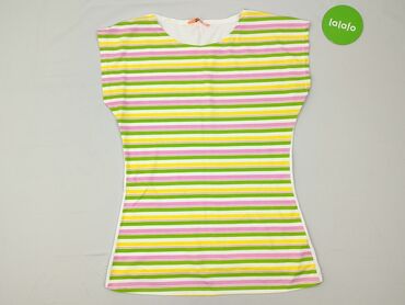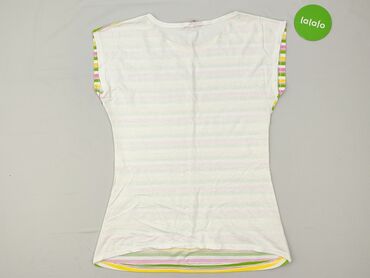 Bluzka damska w paski - Krój: prosty, lekko taliowany, z okrągłym dekoltem - Rękaw: krótki - Wzór: poziome paski w kolorach bieli, turkusu, granatu, czerni i szarości - Materiał: elastyczna, miękk...
