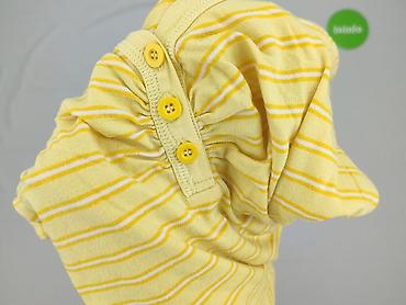 Żółta bluzka damska z krótkim rękawem - Krój: lekko dopasowany, długość do bioder - Dekolt łódkowy z ozdobnym pęknięciem i trzema guzikami z przodu - Marszczenia na ramionach i przy karczku - Szer...Stan:
