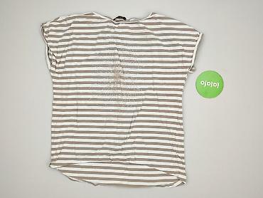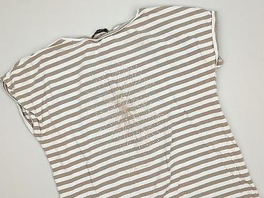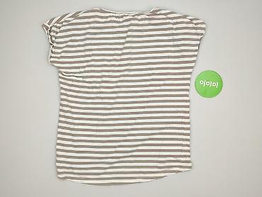 Bluzka damska w paski - Krój: luźny, lekko oversize, z krótkim rękawem typu kimono - Dekolt: okrągły z krótką listwą zapinaną na 2 guziki z przodu - Wzór: poziome pasy w kolorze beżowym i białym -...