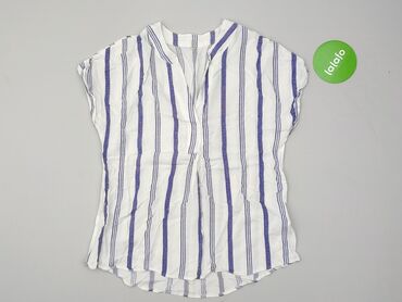 Bluzka damska C&A - Model: hiszpanka z elastyczną gumką przy dekolcie (można nosić na odkryte ramiona) - Krój: luźny, lekko falowany dół i rękawki - Wzór: biało‑niebieskie pionowe paski - Rękaw: k...Stan: