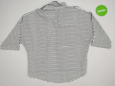 Bluzka damska w paski - Krój: luźny, oversize z opadającym ramieniem, bez klasycznych rękawów - Dekolt: okrągły, wykończony czarną lamówką - Długość: lekko wydłużony tył, zaokrąglone dolne brzegi ...Stan: