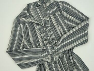 Koszula w paski – luźny krój, krótki rękaw - Wzór: pionowe paski w odcieniach bieli i szarości - Fason: oversize/luźny, lekko wydłużony tył z zaokrąglonym dołem - Rękaw: krótki, swobodny - Zapięci...