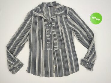 Damska bluzka koszulowa w paski - Klasyczny, pionowy prążek w odcieniach jasnego beżu/szarości i bieli - Długość rękawa: 3/4 z szerokimi mankietami - Zapięcie na guziki na całej długości - Dekolt ...Stan:
