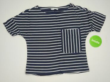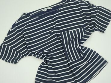 T-shirt damski w paski, rozmiar S - Krój: klasyczny, z krótkim rękawem i okrągłym dekoltem - Wzór: biało-granatowe, poziome paski w marynistycznym stylu - Detal: subtelne aplikacje z drobnych dżet...