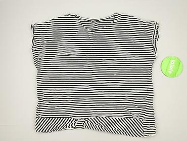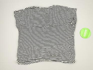 Bluzka damska w paski - Kolor: czarno-białe, wąskie pionowe paski - Krój: luźny, z krótkim rękawem - Dekolt: w kształcie litery V - Rękawy zakończone czarnymi mankietami - Dół lekko zaokrąglony, t...