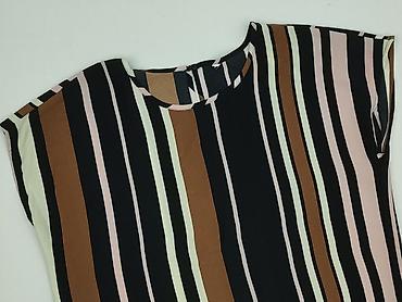 Damska bluzka w paski - Fason: luźny, z opuszczoną linią ramion; krótkie rękawki typu kimono - Dekolt: okrągły - Zapięcie/dekor: rząd guzików wzdłuż obu ramion - Wzór: poziome paski w kolorach gra...