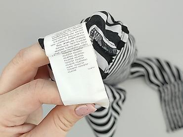 - Wzór: czarno-białe paski (pionowe na tułowiu, poziome na rękawach)