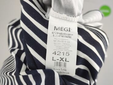 - Wzór: drobne, poziome paski biało-granatowe (marynarski styl)