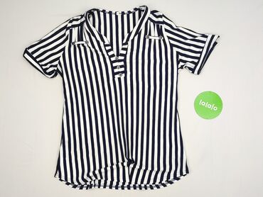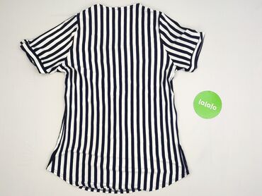 Krótki rękawDamska bluzka w paski – granatowo-biała