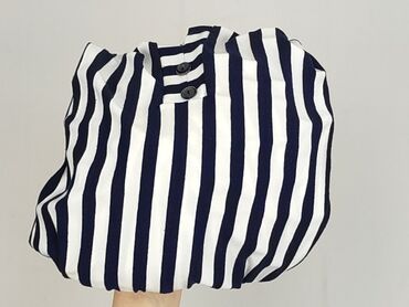 Bluzka damska w paski, bez rękawów - Krój: luźny, przewiewny; rozcięcia po bokach na dole - Wzór: drobne granatowo-białe poziome paski z kontrastowymi, gładkimi białymi wstawkami po bokach i przy ...