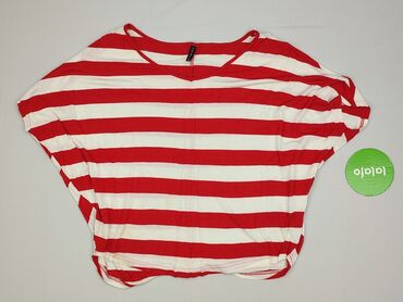 Bluzka damska MADISKA, rozmiar S. - Krój: luźny T-shirt z krótkim rękawem, okrągły dekolt - Wzór: kolorowe, poziome pasy (odcienie różu/czerwieni, żółty, zielone akcenty) - Materiał: cienka, lekka...