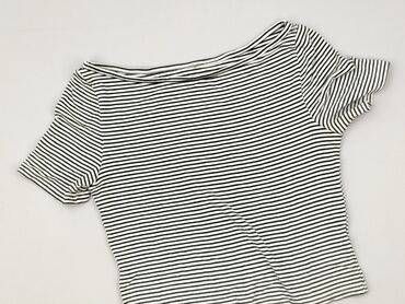 T-shirt damski w paski - Kolor: biało-czarne poziome pasy - Krój: klasyczny, lekko dopasowany - Rękaw: krótki - Dekolt: okrągły, obszyty czarną lamówką - Rozmiar z metki: S - Materiał: miękka dzia...