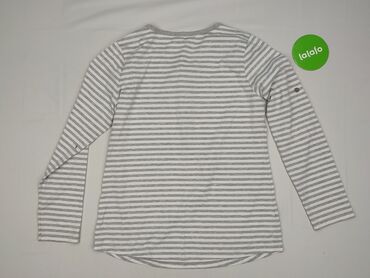Szary bluzko-sweter w paski WOMEN, rozmiar M. - Krój: luźny, z opuszczoną linią ramion, okrągły dekolt - Wzór: poziome białe paski na melanżowej szarości - Rękawy: długie - Dół: doszyta biała, lek...