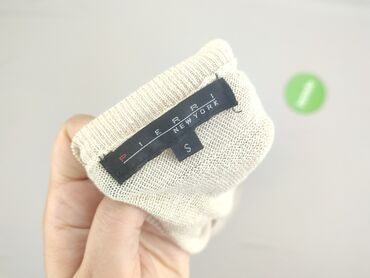 Bluzka prążkowana Sinsay – rozmiar S - Kolor: jasny beż/ecru, delikatny prążek - Fason: dopasowany, długi rękaw - Golf typu mock neck (półgolf) - Ozdobne złote napy na lewym ramieniu – zapięcie na...