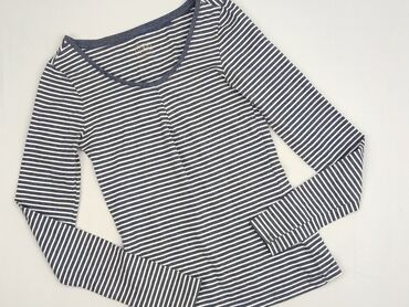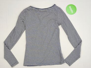 Bluzka damska C&A Clockhouse - Rozmiar: 36 (metka widoczna na zdjęciu) - Wzór: niebiesko-białe, cienkie paski - Krój: luźniejszy, lekko wydłużony tył - Rękawy: długie, zakończone marszczeniem/falb...