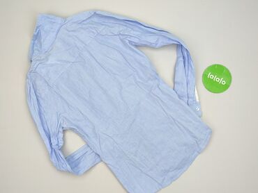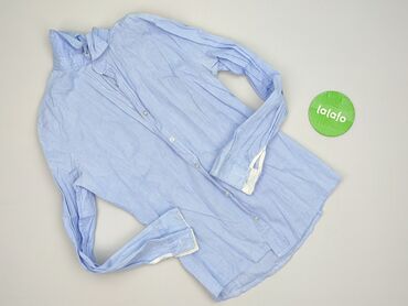 Bluzka damska w paski, 100% bawełna - Krój: luźny, lekko rozszerzany dół - Wzór: wąskie paski w odcieniach granatu/szarości na białym tle - Rękawy: długie, mankiety zapinane na guzik - Dekolt: stó...