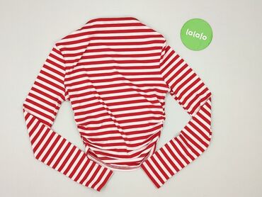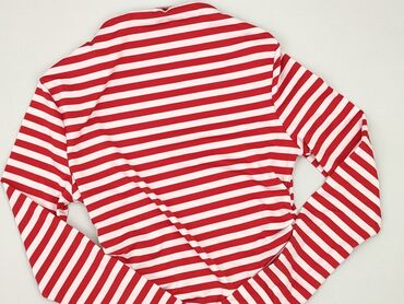 Czerwono-biała bluzka w wąskie paski - Fason: dopasowany, z długim rękawem - Dekolt: szeroki, półokrągły - Długość: sięga bioder - Wzór: równomierne, drobne paseczki - Materiał: miękka, elastyczna ...