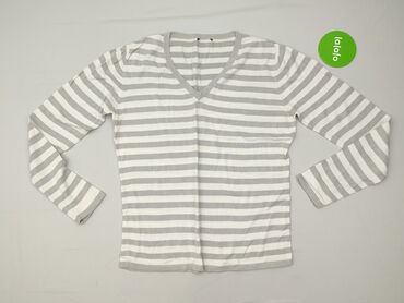 Ten damski sweter w rozmiarze L, wykonany przez H&M DIVIDED, to stylowy dodatek do każdej garderoby. Charakteryzuje się prążkowaną dzianiną w kolorze szarym, uzupełnioną czarnymi i różowymi paskami...