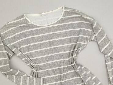 Szary bluzko-sweter w paski WOMEN, rozmiar M. - Krój: luźny, z opuszczoną linią ramion, okrągły dekolt - Wzór: poziome białe paski na melanżowej szarości - Rękawy: długie - Dół: doszyta biała, lek...