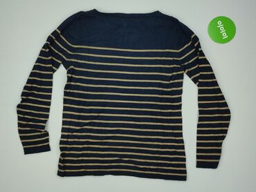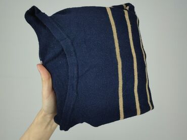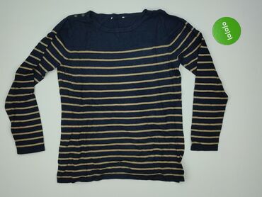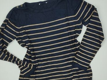 Bluzka w paski, damska - Krój: prosty, lekko luźny - Rękaw: 3/4 - Dekolt: okrągły - Wzór: poziome paski granatowo-białe z melanżowym efektem - Materiał: miękka, elastyczna dzianina swetrowa (przyj...