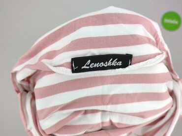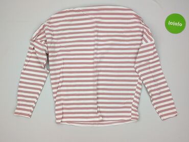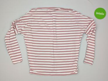Bluzka damska z dzianiny, kolor jasny róż z połyskującymi, srebrzystymi paskami. - Krój: luźny, z opuszczoną linią ramion - Dekolt: w kształcie litery V - Rękawy: długie - Wzór: poziome paski z de...Stan: