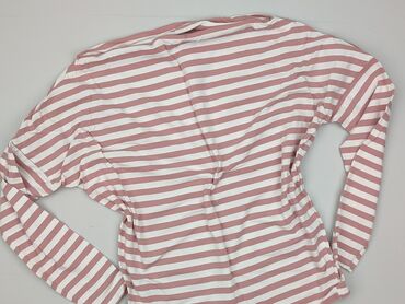 Bluzka damska w paski, długi rękaw - Krój: klasyczny, prosty - Dekolt: okrągły - Rękaw: długi - Wzór: drobne poziome paski w kolorach różowym i granatowym - Materiał: miękka, cienka dzianina (praw...
