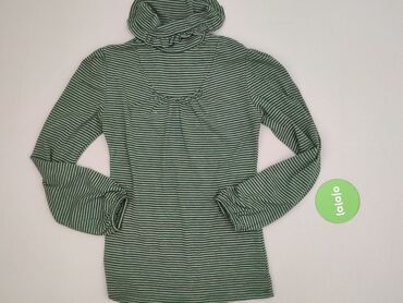 Bluzka damska z długim rękawem, rozmiar S. - Krój: dopasowany, długość do bioder - Dekolt: okrągły, z ozdobną wstawką i kontrastowym, czarnym panelem po prawej stronie - Wzór: kolorowe, poziome pa...