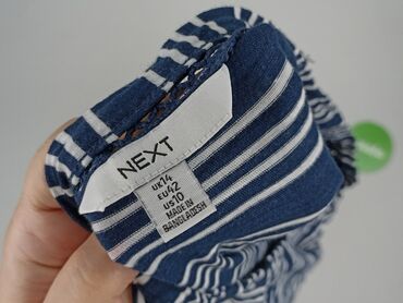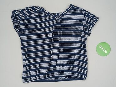 Bluzka damska Next - Kolor: niebieski - Fason: luźny t‑shirt z dekoltem w serek (V-neck) - Rękaw: krótki, opadający na ramię - Materiał: miękka, gładka dzianina bawełniana z domieszką elastanu (na...Bluzka damska marki Next, charakteryzująca się wzorem w biało-granatowe paski. Posiada krótkie rękawy i dekolt w kształcie litery V, co nadaje jej swobodny charakter. Dolny brzeg jest ściągany gumką, tworząc lekko marszczony efekt. Idealna do codziennych stylizacji, zapewnia komfort noszenia dzięki bawełnianemu materiałowi.