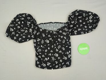 Bluzka damska w kwiaty (stokrotki) – czarna baza, drobny biało‑żółty nadruk. - Fason: hiszpanka/boho z elastycznym, marszczonym karczkiem (smock) dopasowującym się do sylwetki. - Rękawy: długie, ...