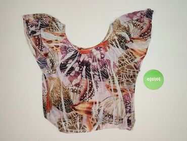 Bluzka damska z motywem motyli - Krój: luźna koszulowa bluzka z krótkim rękawem - Dekolt: w kształcie litery V, zapinana na guziki z przodu - Detale: elastyczne, marszczone wstawki (smocking) na w...Stan: