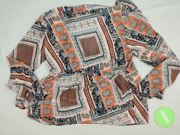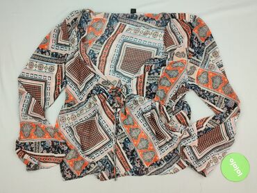 Bluzka damska z długim rękawem, wzór paisley/etniczny, wielokolorowa - Krój: lekko dopasowany, z czarną wstawką w dekolcie tworzącą efekt topu pod spodem - Zapięcie: wiązanie z przodu na troczek p...Stan: