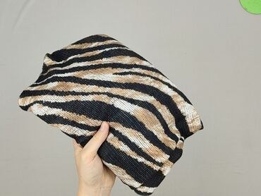 Długi rękawPrzedmiotem ogłoszenia jest damska bluzka z długimi rękawami, charakteryzująca się wzorem imitującym skórę zebry. Głęboka czerń łączy się z beżowymi pasami, tworząc wyrazisty, zwierzęcy motyw. Materiał bluzki wydaje się być miękki i przyjemny w dotyku. Luźny krój, z szerokimi rękawami zwężającymi się ku nadgarstkom, zapewnia komfort noszenia i swobodę ruchów. Idealna do stylizacji casualowych, jak i bardziej eleganckich, w zależności od dobranych dodatków. Materiał jest fakturowany, co dodaje jej unikalnego charakteru.