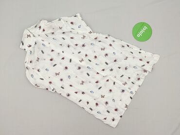 Biała bluzka damska z krótkim rękawem - Krój: luźna góra z szerokim, elastycznym pasem u dołu (smocking) podkreślającym talię - Dekolt: prostokątny, lekko odkryte ramiona - Rękawy: krótkie, delika...