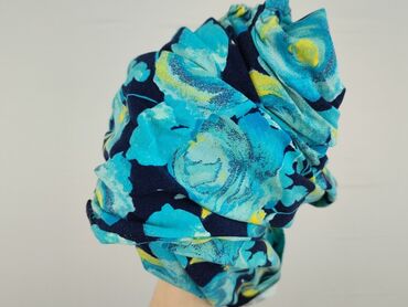 Koszulka/bluzka damska z krótkim rękawem - Kolor: jasny niebieski z granatowym, kwiatowym nadrukiem - Krój: luźny, taliowany wiązaniem/ściągaczem w pasie - Dekolt: stójka z krótką listwą guzikową ...