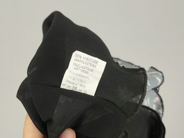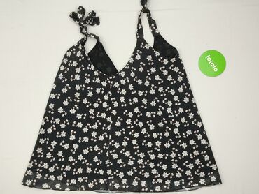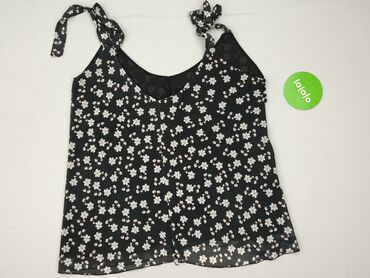 Bez rękawówCzarna bluzka damska z białym wzorem w kwiaty, idealna do codziennych stylizacji. Posiada ramiączka wiązane na ramionach, które dodają uroku i pozwalają na regulację. Bluzka wykonana jest z mieszanki wiskozy, poliestru i elastanu, co zapewnia komfort noszenia i dopasowanie do sylwetki. Krój typu tank top z dekoltem w kształcie litery V, odpowiedni na ciepłe dni. Wyprodukowana we Włoszech, gwarantuje jakość i styl. Bluzka jest używana w idealnym stanie.