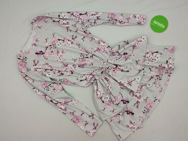 Bluzka damska z długimi rękawami, ozdobiona wzorem kwiatowym w odcieniach różu, czerwieni i zieleni na czarnym tle. Charakteryzuje się luźnym krojem i wiązaniem w talii, co pozwala na dopasowanie. ...Stan: