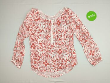 Bluzka damska z długim rękawem, wzór ornamentalny - Krój: swobodny, lekko przedłużony tył (zaokrąglony dół) - Dekolt: w kształcie litery V z krótką listwą guzikową (4 guziki) - Rękawy: długie, zak...